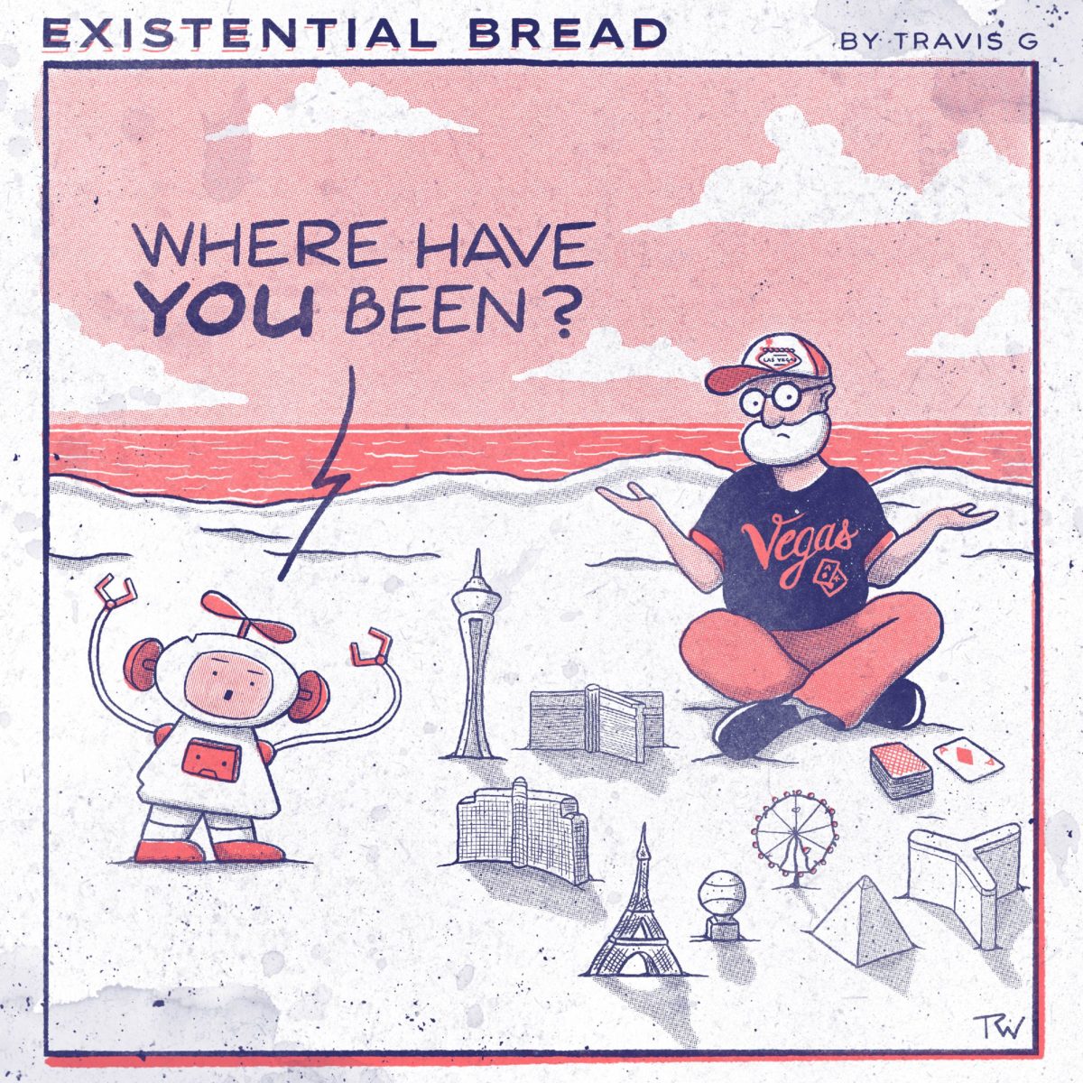 A complete filler comic. I spent a week in Vegas and I just had this concept come to mind. I don’t think it’s “canon” but I almost made a big deal of it. Honestly at this point I am struggling with the plot and not sure how to unleash the other two characters into this bubbling lava of a comic strip concept.