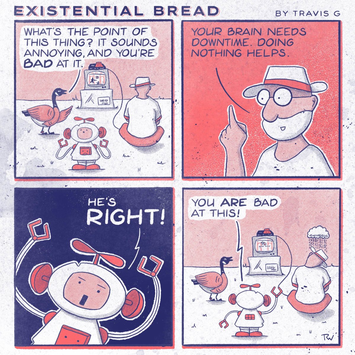 Another scene with the video game machine! Where did it come from? What is its purpose? What video game is he playing??? (Okay that one you can figure out if you know your Sega Master System catalogue…)