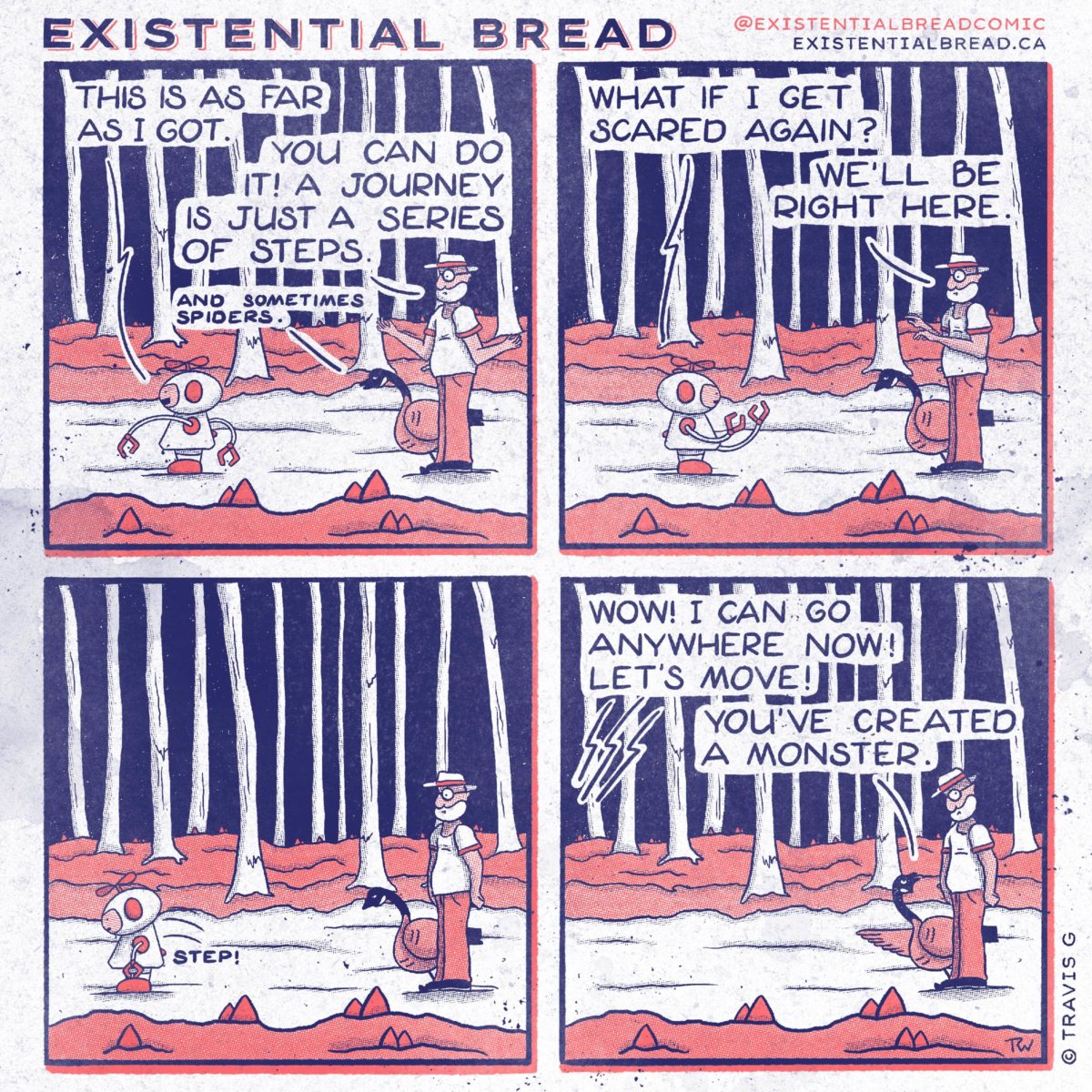 This comic took seven hours. I repeated the background four times in a rare move. I try to vary up at least one panel per comic, but for this one I kind of wanted a simpler sequence. Literally varying up the “meta” of the comic from time to time.