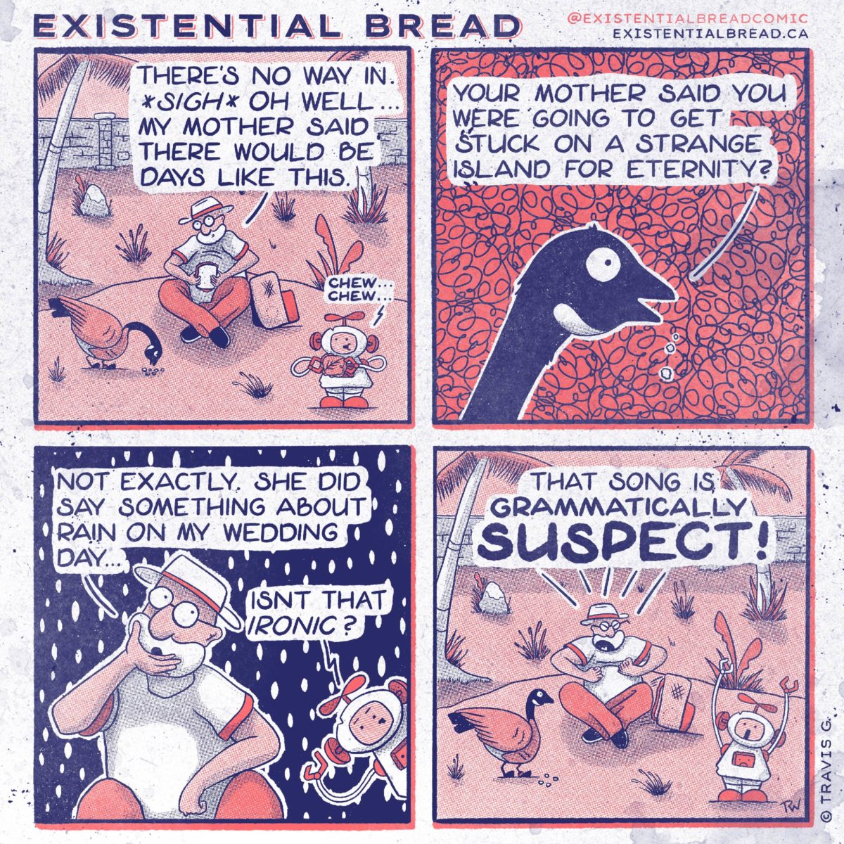 Laboured over this one for some time. I think it was written in its first form before comic #050! Obviously massaged quite a bit, but the core idea of hating on ‘Ironic’ has been there a while. Since like…1998!