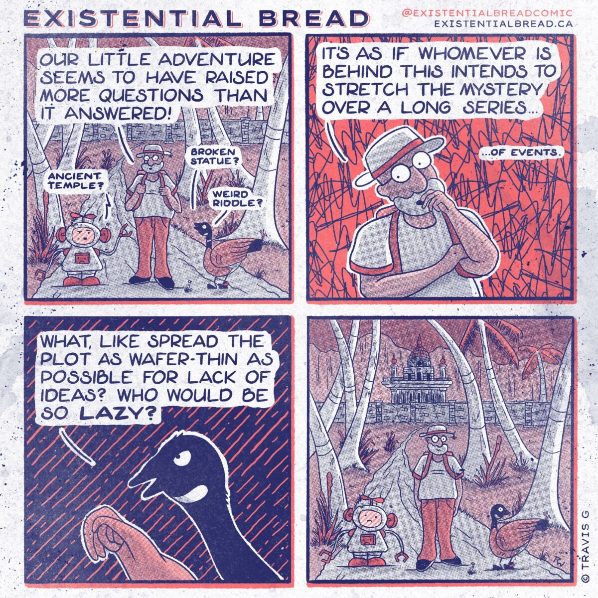 Another semi-successful ‘mini-arc’ towards the finale of this ‘chapter/part/season/series/thing’! I think it’s good in a format like this to do a sort of ‘summary’ episode, so as people flip through the comics they get a little recap now and again. Might also tease new readers to go back? I’m still not sure people are consuming sequential web comics in any great quantity, but it would be great to find a community that does! (Already posting to r/webcomics and r/comics!)