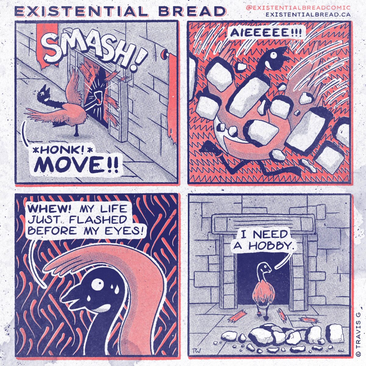 This comic is about anger. Kevin is full of it, and expresses it as often as possible. There’s fully a riddle for the door, but he’s having none of it. Can a goose kick down a wooden door? I feel like there’s enough rage there.